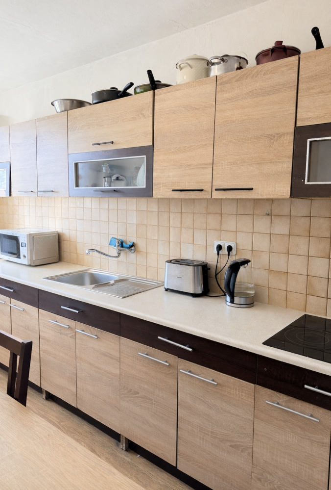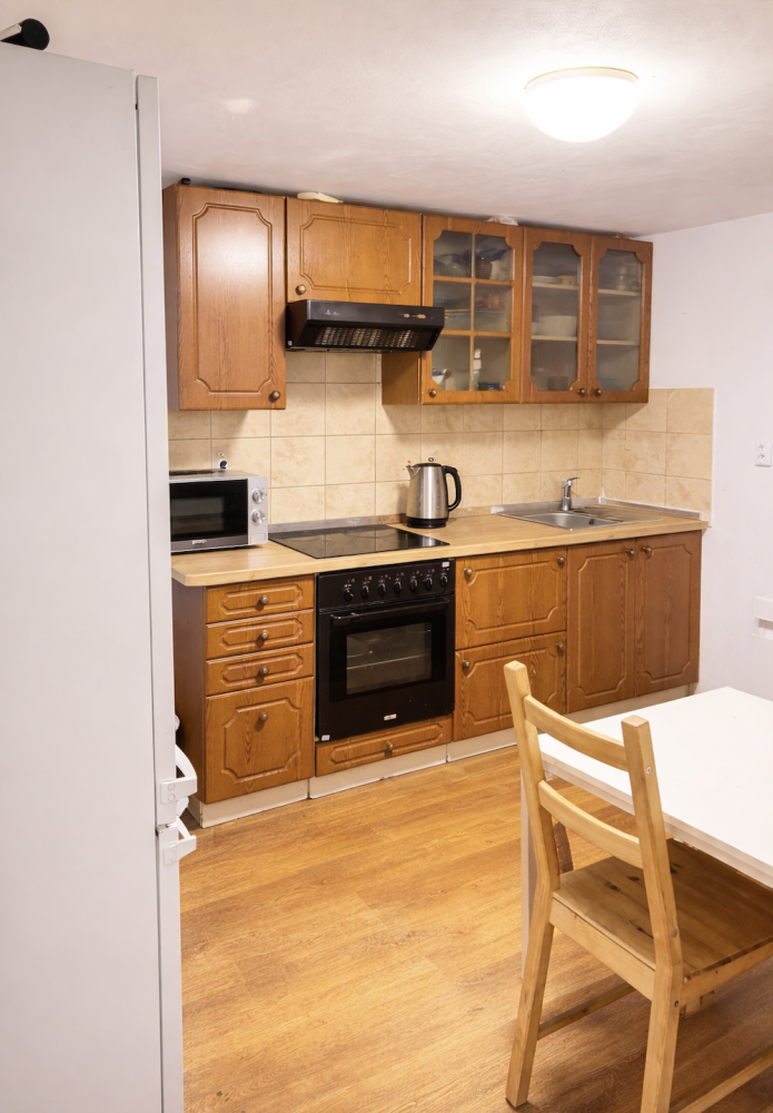 Prostorný a moderní apartmán se dvěma ložnicemi je ideální pro rodiny, skupiny nebo obchodní cestující, kteří hledají pohodlí a soukromí. Nabízí dvě oddělené ložnice s pohodlnými postelemi a plně vybavenou kuchyň, kde si můžete připravovat vlastní jídla. Kuchyň je vybavena lednicí, rychlovarnou konvicí a mikrovlnnou troubou. Apartmán má vlastní koupelnu se sprchou a toaletou pro maximální komfort. K dispozici je